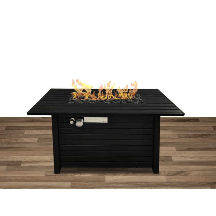 Designed for ease of use, this fire pit table may be fueled by propane or natural gas, offering flexibility in fuel options to suit individual preferences and outdoor setups. It features easy ignition and flame control mechanisms for convenient operation.