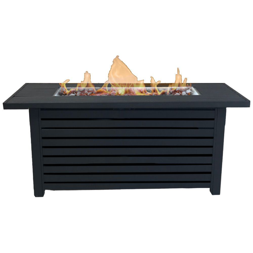 Turn any chilly evening into a cozy warm night by huddling around this rectangle of steel fire pit table. Crafted with beautiful steel construction, this fire pit is a winner when entertaining guests in your backyard and enjoying outdoor living.What's Included?FillerLidCoverFeaturesIt burns up to 8 hours on a 20-pound tankThe fire pit table can accommodate two 10 pounds of fire stonesOpening size: 35" W x 8.5" DThe right weight for the pit is 20 pounds