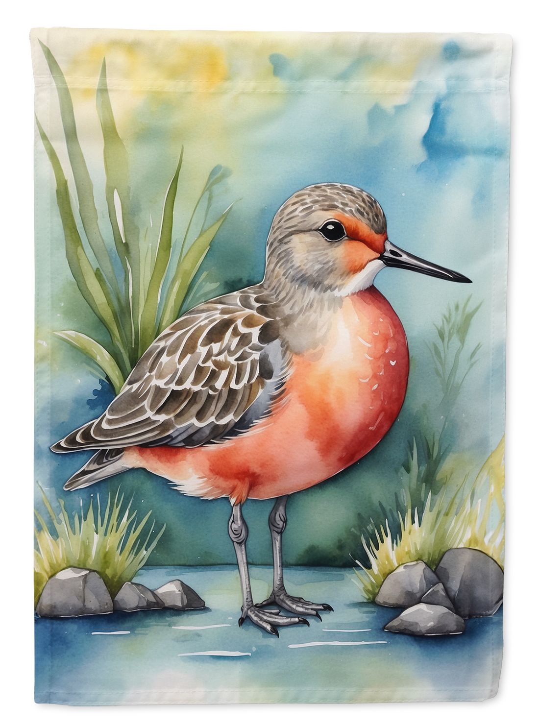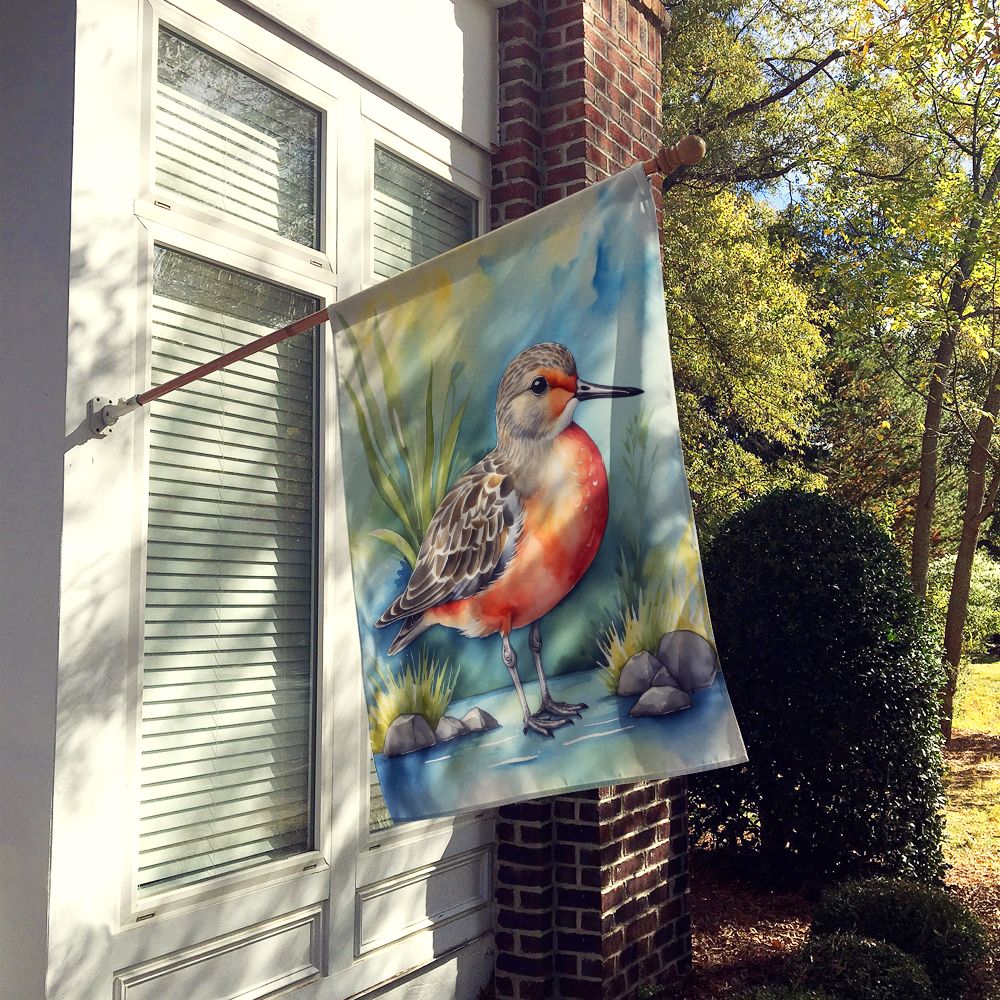 House Flag featuring breed specific Red Knot bird artwork. Presenting our Heavy Duty Polyester House Size Decorative Sleeve Pole Flag, a vibrant addition to enhance the aesthetic appeal of your home. This large decorative flag, measuring approximately 28 x 40 inches, offers ample coverage and visibility. Each flag is meticulously sewn and made individually, ensuring a unique piece that may slightly vary in size. It's a sleeve pole flag, designed to fit a standard decorative flag pole effortlessly. Please note that the flag pole and bracket are not included and should be purchased separately. What sets our flag apart is its dual-sided print. The design is mirrored on both sides of the fabric, allowing for uniform visibility regardless of the angle. Printed in full color, our flag showcases vibrant hues that truly stand out. To ensure lasting vibrancy and durability, the dyes are heat-set into the fabric. This ensures your flag remains bright and captivating through various weather conditions. Elevate the look of your home with our Heavy Duty Polyester House Size Decorative Sleeve Pole Flag!